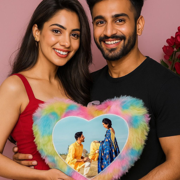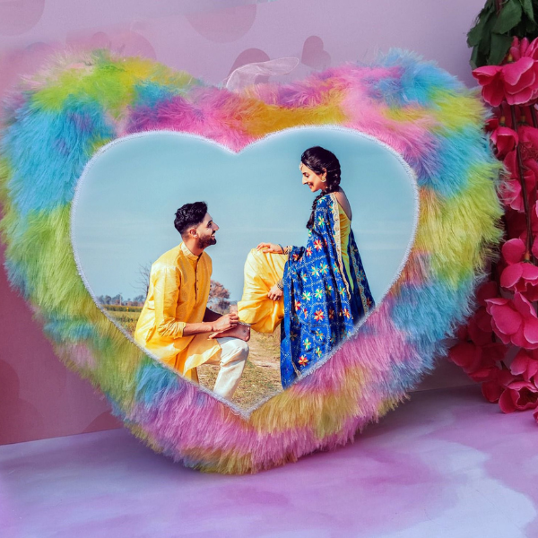 ⭐ Product - Imported fur Customised pillow ( Heart)